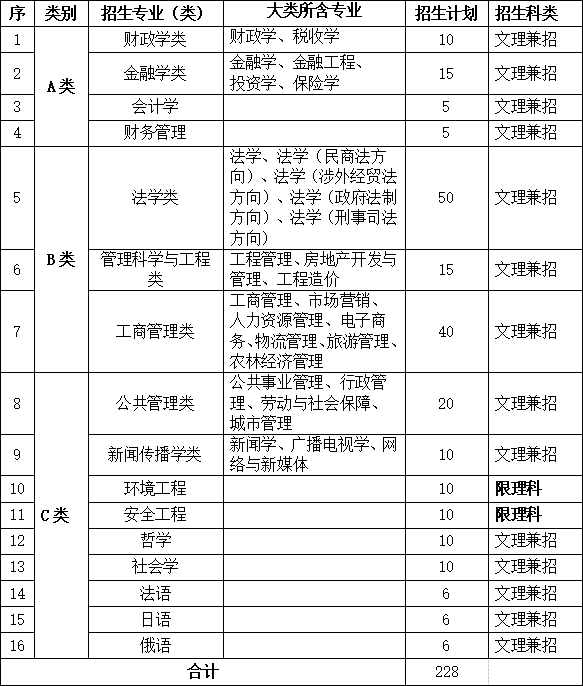 中南财经政法大学2018年自主招生简章