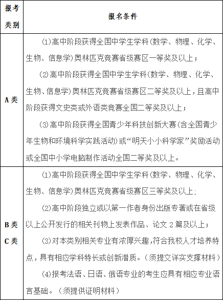 符合2018年全国普通高等学校招生考试报名资格,具有学科特长和创新潜质且符合各类条件之一的优秀高中毕业生,均可报名。