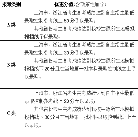 2.自主招生入围考生填报的专业(类)应与获得自主招生合格资格的专业(类)一致,按照A、B、C类对应优惠分值享受优惠,考生入学后不能转入其他专业学习。