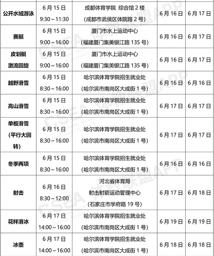 注:滑水、摩托艇项目考试,具体安排另行通知。