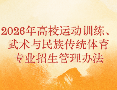 | 体育单招【文件】 | 运动训练专业、民族传统体育专业单独提前招生。 | 具备二级运动员及以上运动技术等级称号。 | 冬季项目:2026/1/5-2026/5/12夏季项目:2026/3/20-5/12 | 参加文化水平考试和体育专项考试 | 查看本专题底部简章汇总 | 只能就读体育类专业(例如:运动训练、民族传统体育专业等) |