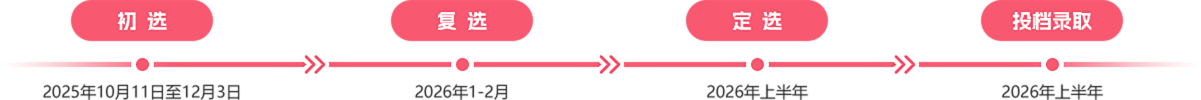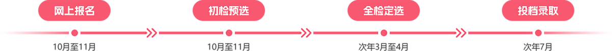 ①普通高中毕业生高考选考科目须包含物理和化学,外语限英语,预期高考成绩须达到本省特控线。少数民族地区学生须参加普通(汉授)高考。②军地高校应届毕业生须按期取得理学、工学专业全日制学历、学位,地方普通高校毕业生须毕业于“双一流”建设高校或建设学科,定向就业毕业生、被作留级处理或中途休学半年以上(不含应征入伍)的不列入选拔范围。【查看详情】