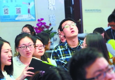 沈磊说自己不喜欢拥挤的北京,“我家是甘肃的,但很多亲戚在西安,所以看到西安企业在招聘我就立即应聘了。”而来自青海的张海云则表示,自己从没想过在北京求职。“我们学校并不是名牌校,我又是本科生,想在北京找个好工作太难,我觉得去西安挺好,建工集团是我喜欢的企业,专业也对口,所以9月我就签了。比起这些急着找工作的学生,我幸运得多了。”(记者 李莉 J063 刘航 摄)