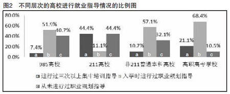 (二)高职高专院校进行职业规划指导情况最好,非“211”本科高校次之,“985”高校和“211”高校最差