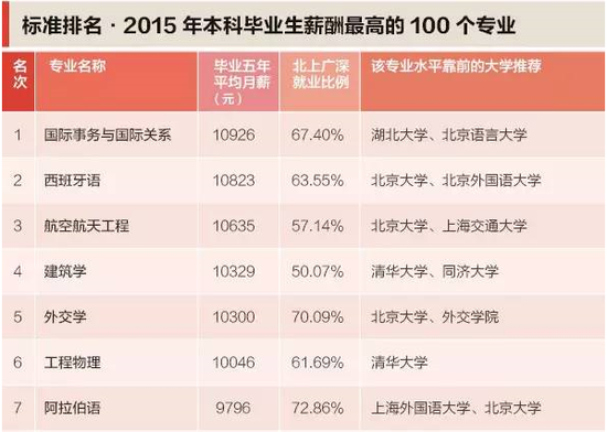 而在薪酬榜前10当中,纯理工科专业占了6个,还有3个小语种专业。