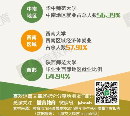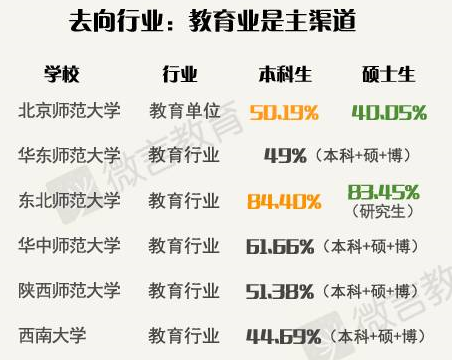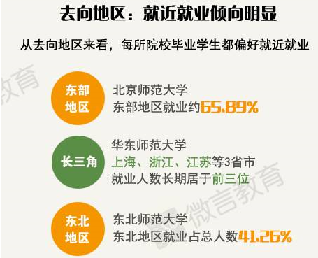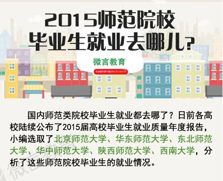近日,教育部直属的75所院校陆续公布了2015届高校毕业生就业质量年度报告,其中北京师范大学、华东师范大学、东北师范大学、陕西师范大学、西南大学和华中师范大学6所师范类高校毕业生都去哪儿了?
