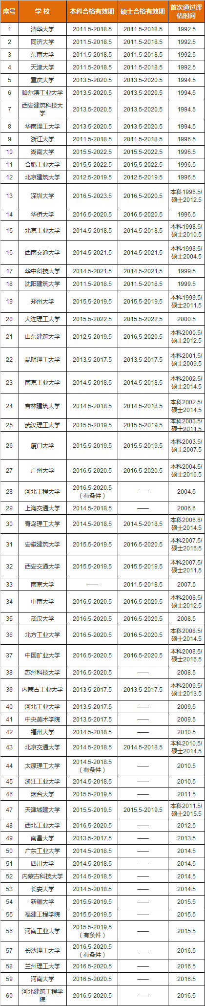 附件:通过全国高等院校建筑学专业教育评估的高校